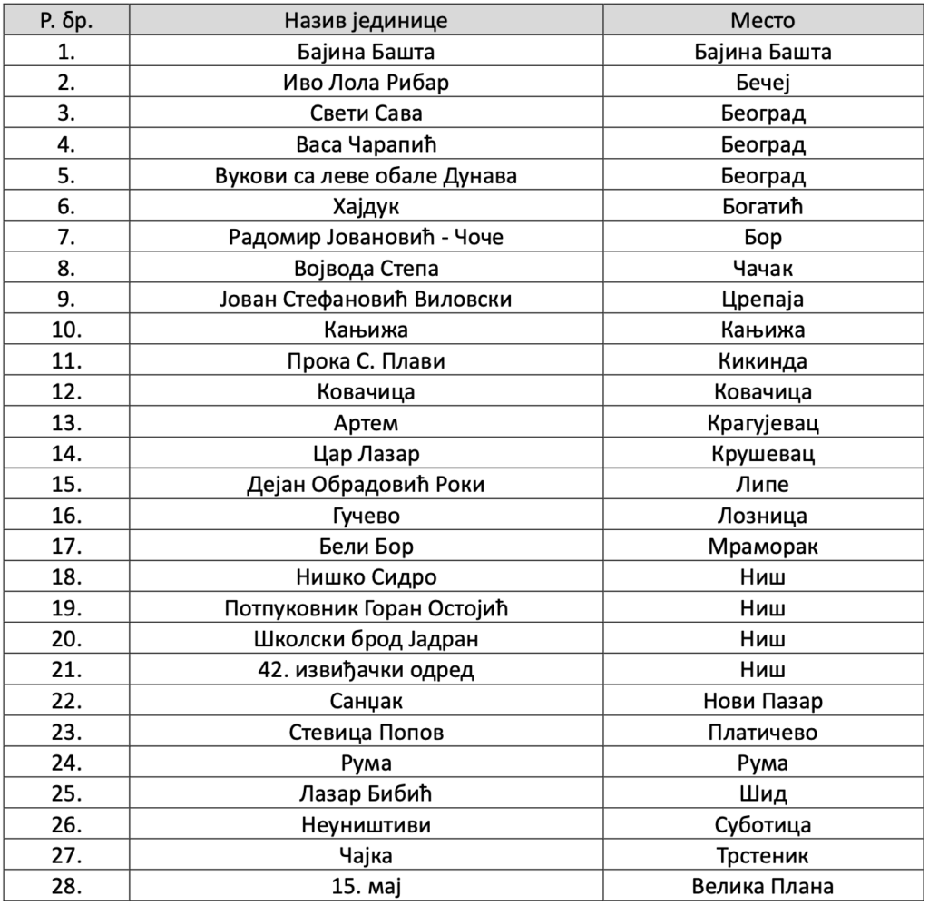 Spisak registrovanih jedinica u Savezu izviđača Srbije za 2025. godinu