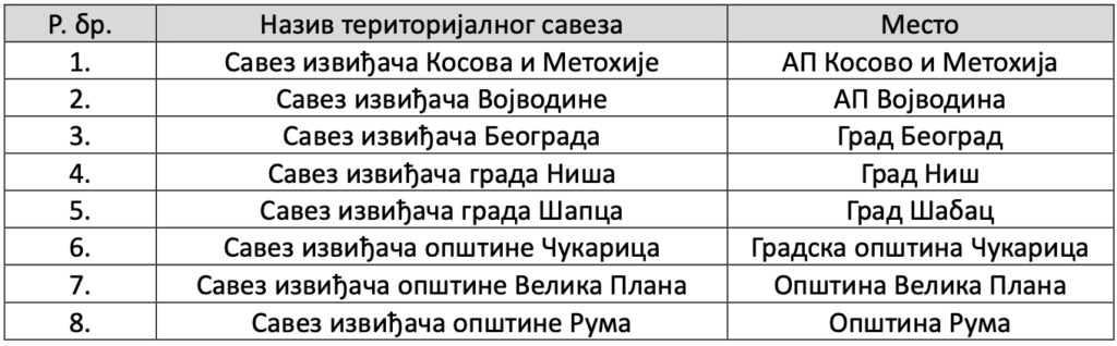 Spisak registrovanih teritorijalnih saveza u Savezu izviđača Srbije za 2025. godinu